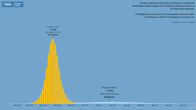 And what OSU’s projection may not accurately capture is Responsible RestartOhio plan. Businesses are open again, people are making hair salon appointments and going back to offices and factories. I noticed last week that more cars share the road with me on my commute. Actually, road traffic looked like it was back to normal. Which is kinda too bad in a way. I selfishly liked my post-Armageddon commute on quiet roads; just me and the other Essentials off to do the greater good.