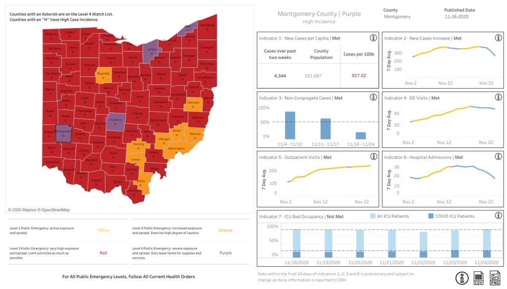 Four Ohio counties have now been upgraded to Level 4 Purple according to the Ohio Public Health Advisory System.