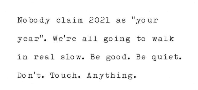 Friday January 1 2021 Sure, we're all ready for a fresh start. Just like I want a hard stop to writing this pandemic journal. But we can't all wish the weirdness of 2020 away with a wave of our hands, now can we? Still. That kind of negative thinking is never helpful to the delicate … Continue reading 124. Traditional Superstition